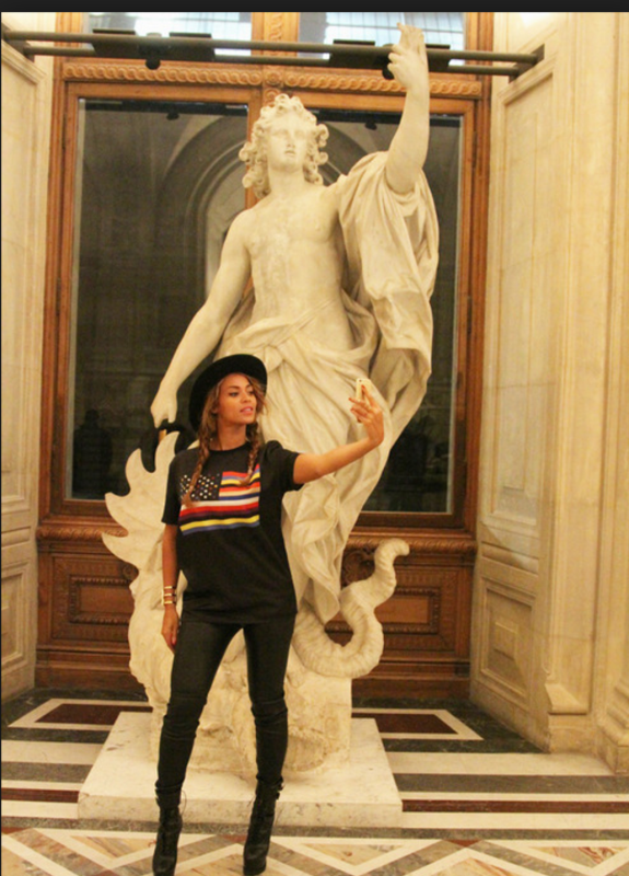 Beyoncé Knowles with Apollo killing the Python snake at the Louvre.